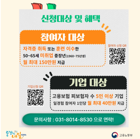 관심 있는 분들은 가까운 고용센터나 중장년 내일센터를 통해 상담받아보시기 바랍니다.